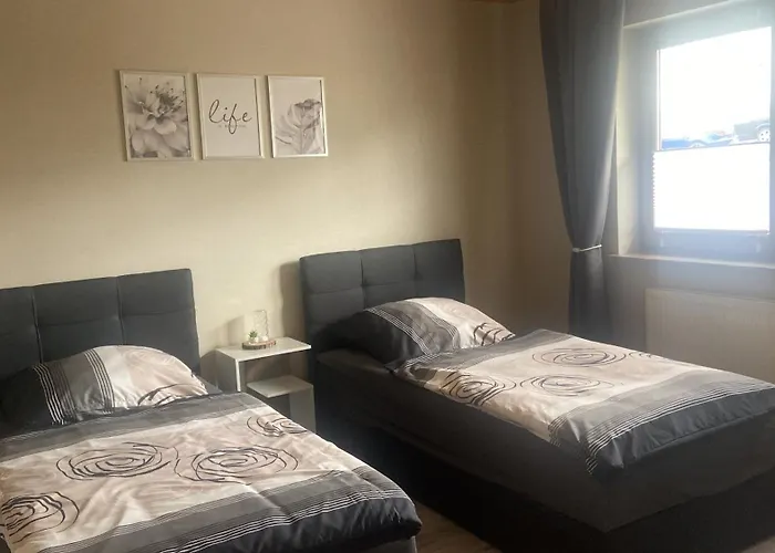 Luxury Apartment Kelberg Naehe Nuerburgring предлагают гостям 2 спальни для отдыха. Апартаменты насчитывают 2 ванные комнаты для комфорта гостей. В ванной к услугам гостей отдельный туалет и душ.